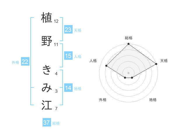 植野 きみ江さんを姓名の画数から五運を鑑定