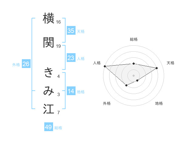 横関 きみ江さんを姓名の画数から五運を鑑定