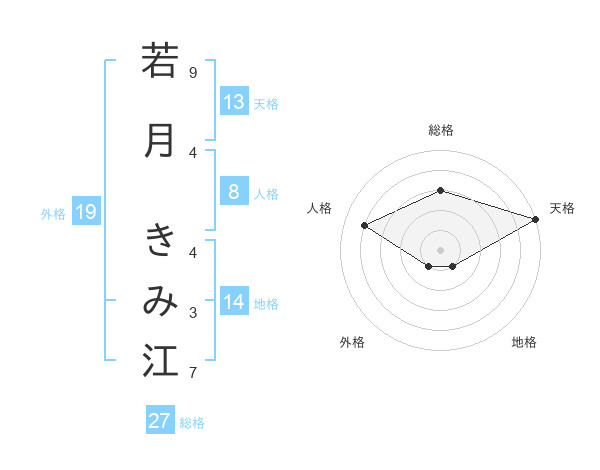 若月 きみ江さんを姓名の画数から五運を鑑定