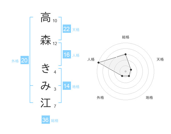 高森 きみ江さんを姓名の画数から五運を鑑定