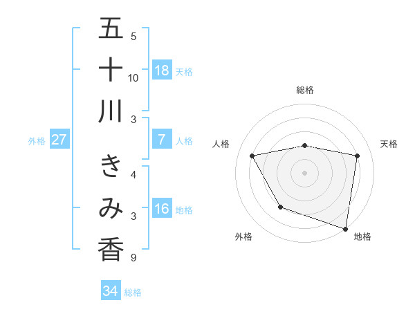 五十川 きみ香さんを姓名の画数から五運を鑑定