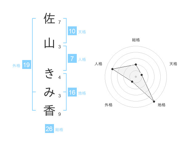 佐山 きみ香さんを姓名の画数から五運を鑑定
