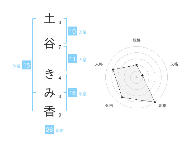 土谷 きみ香さんを姓名の画数から五運を鑑定