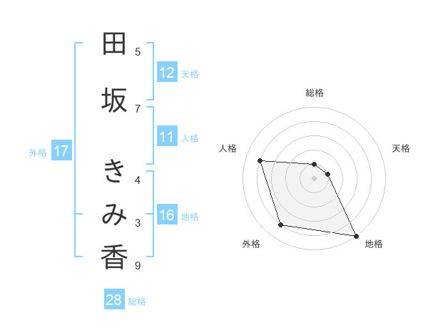 田坂 きみ香さんを姓名の画数から五運を鑑定