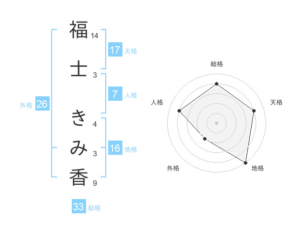 福士 きみ香さんの天格は17画の4点!
