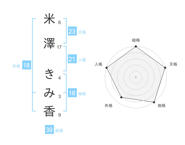 米澤 きみ香さんを姓名の画数から五運を鑑定