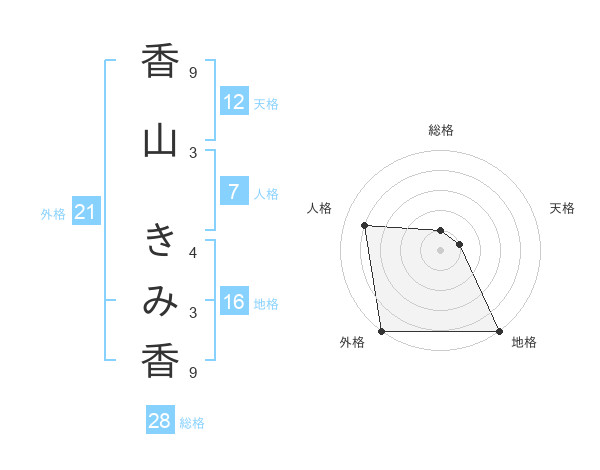 香山 きみ香さんを姓名の画数から五運を鑑定