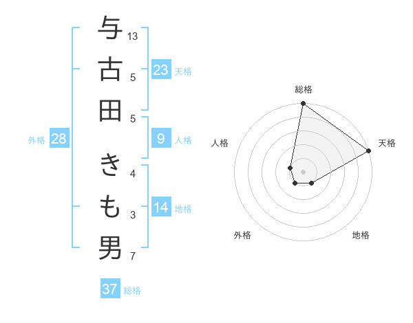 与古田 きも男さんを姓名の画数から五運を鑑定