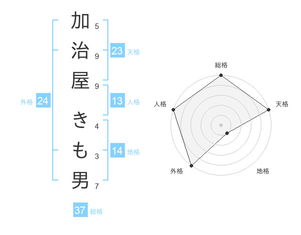 加治屋 きも男さんの総格は37画の5点