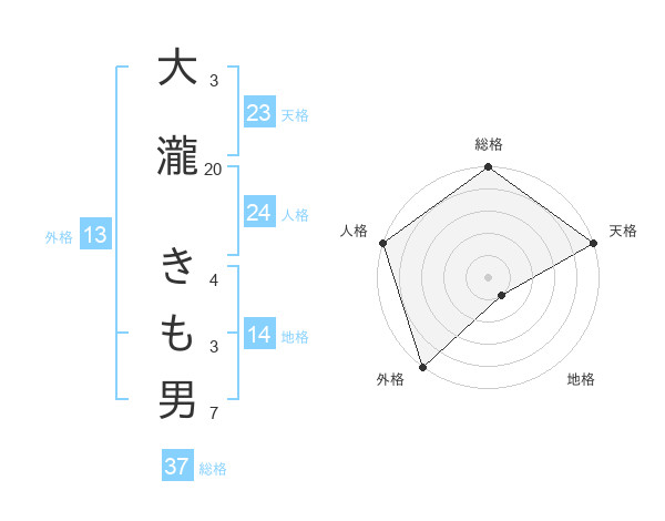 大瀧 きも男さんの天格は23画の5点!