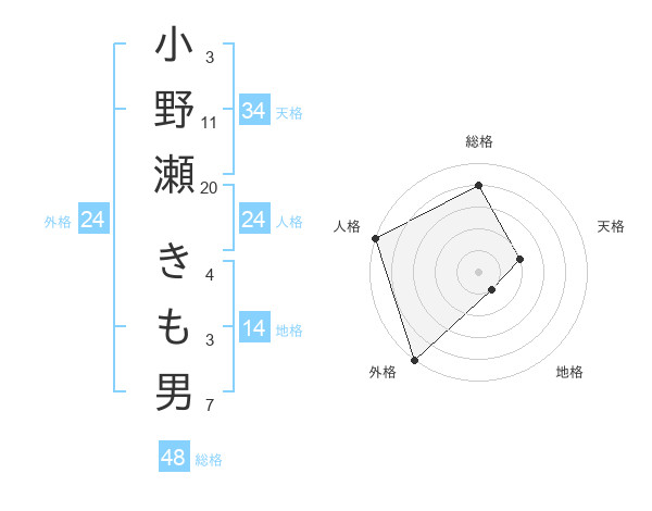 小野瀬 きも男さんを姓名の画数から五運を鑑定