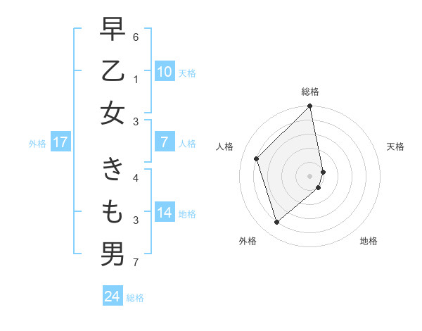 早乙女 きも男さんの総格は24画の5点!