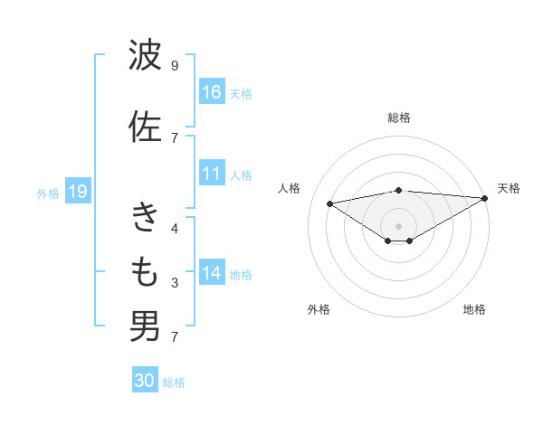 波佐 きも男さんの天格は16画の5点!