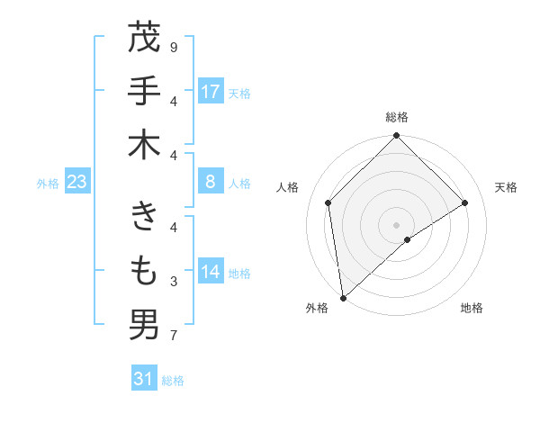 茂手木 きも男さんの総格は31画の5点!