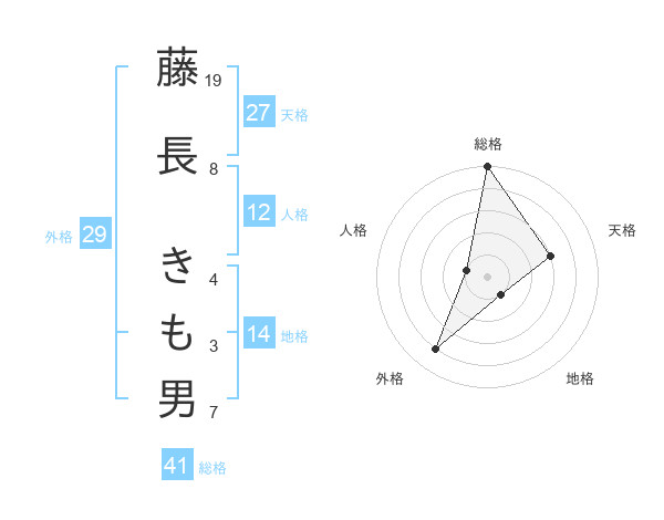 藤長 きも男さんの天格は27画の3点!