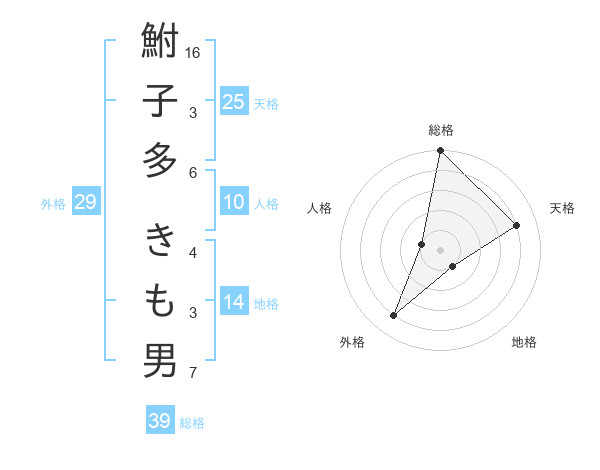 鮒子多 きも男さんを姓名の画数から五運を鑑定