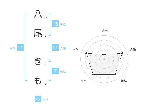 八尾 きもさんの外格は11画の4点!