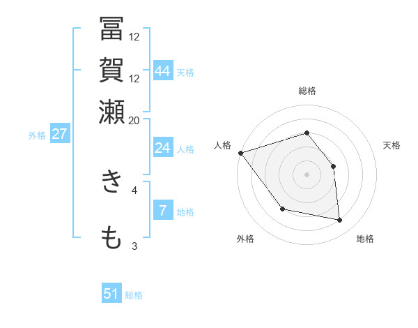 冨賀瀬 きもさんを姓名の画数から五運を鑑定