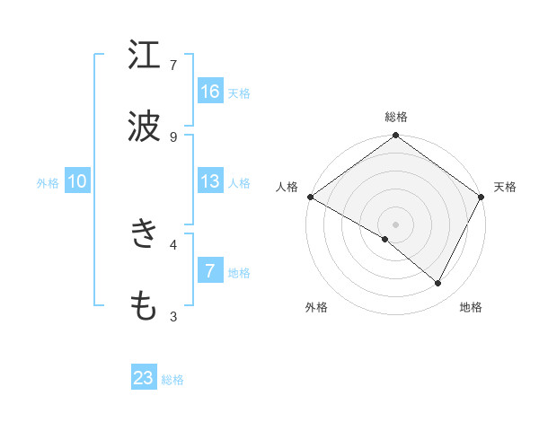 江波 きもさんの天格は16画の5点!