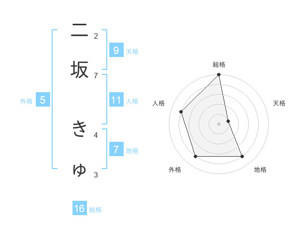 二坂 きゅさんの総格は16画の5点!