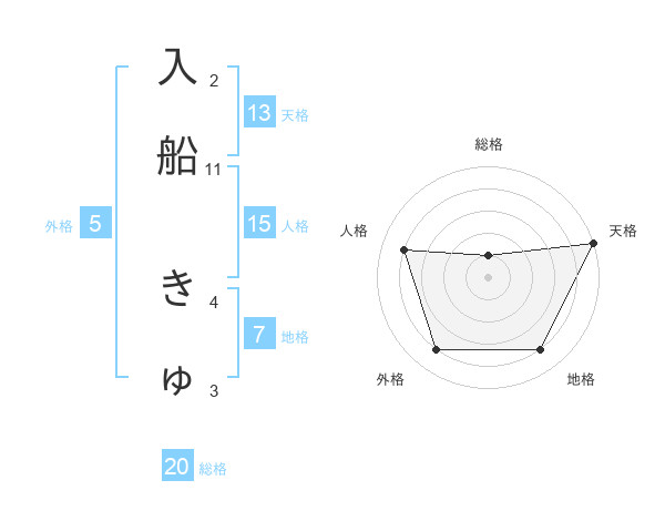 入船 きゅさんの天格は13画の5点!