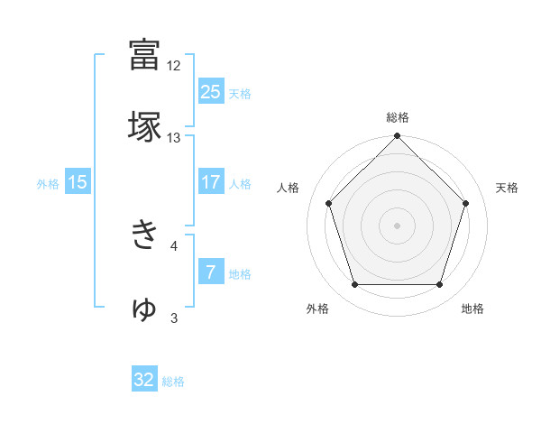 富塚 きゅさんの外格は15画の4点!