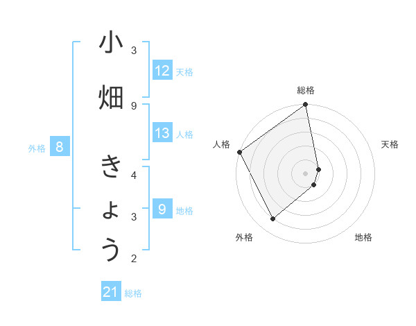 小畑 きょうさんを姓名の画数から五運を鑑定
