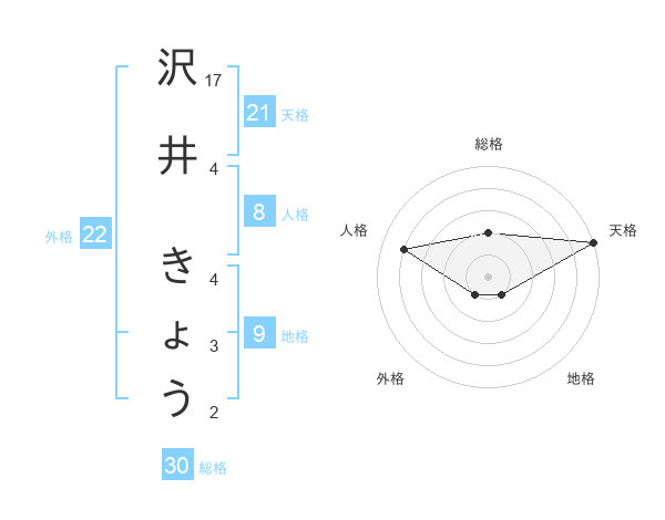 沢井 きょうさんを姓名の画数から五運を鑑定