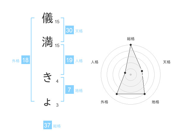儀満 きょさんの総格は37画の5点!