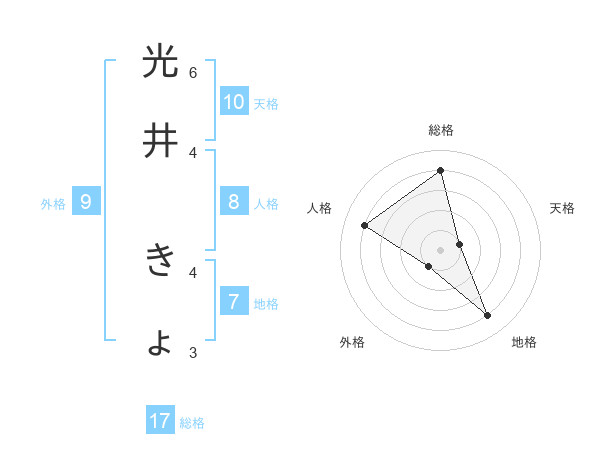光井 きょさんの総格は17画の4点!