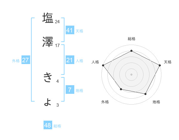 塩澤 きょさんを姓名の画数から五運を鑑定