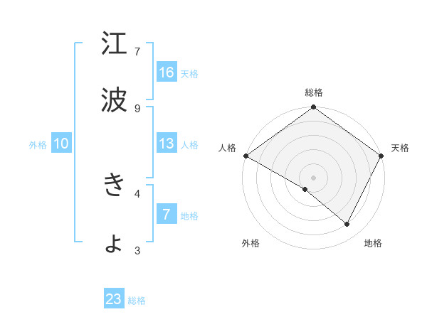 江波 きょさんの総格は23画の5点!