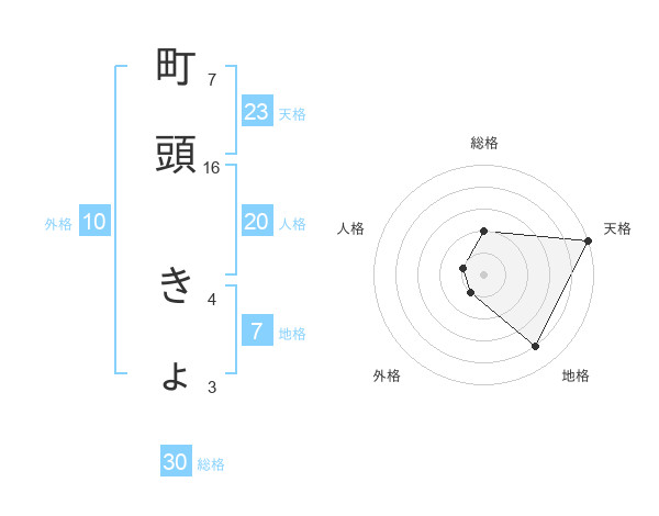 町頭 きょさんの総格は30画の2点!