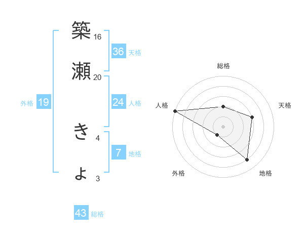 築瀬 きょさんを姓名の画数から五運を鑑定