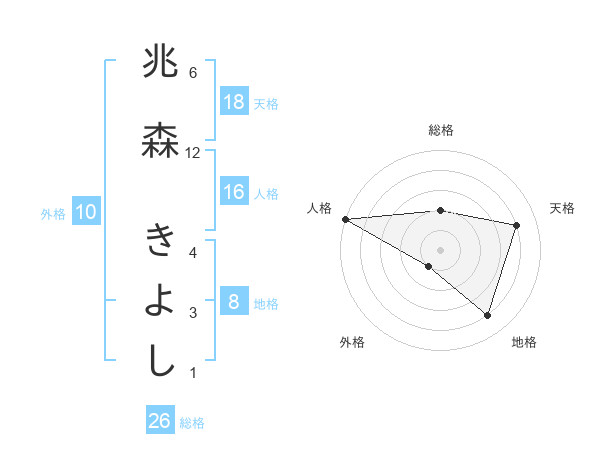 兆森 きよしさんの総格は26画の2点!