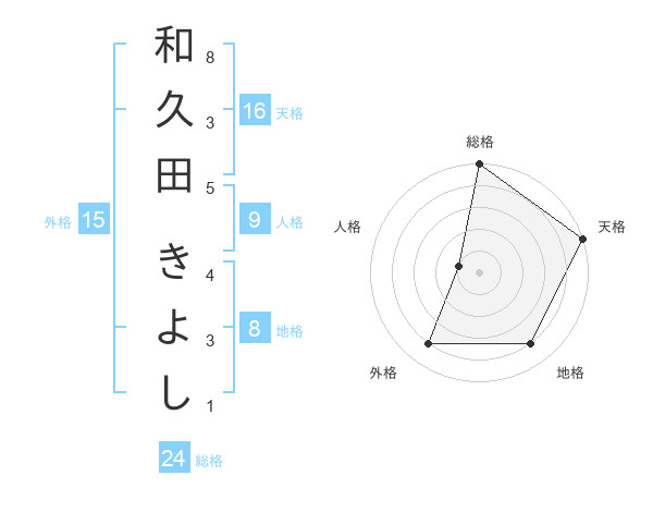 和久田 きよしさんの天格は16画の5点!
