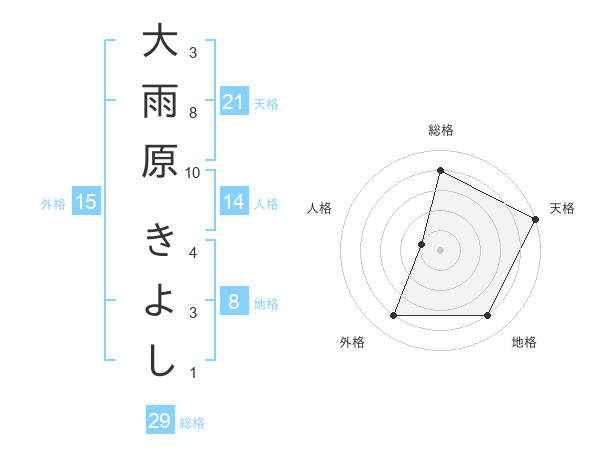 大雨原 きよしさんの天格は21画の5点!