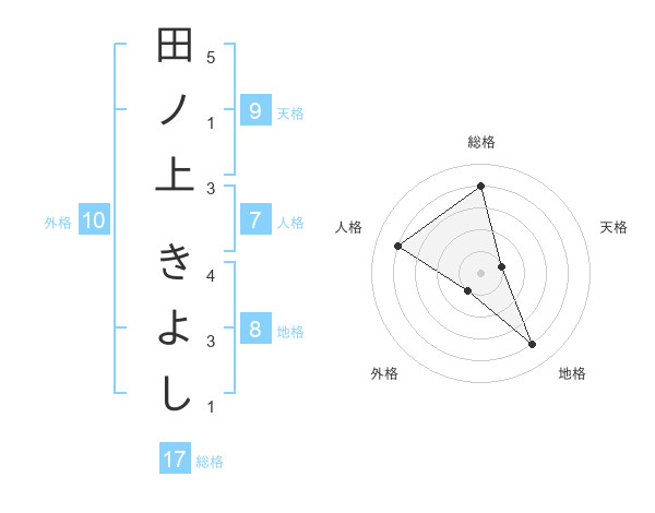 田ノ上 きよしさんを姓名の画数から五運を鑑定