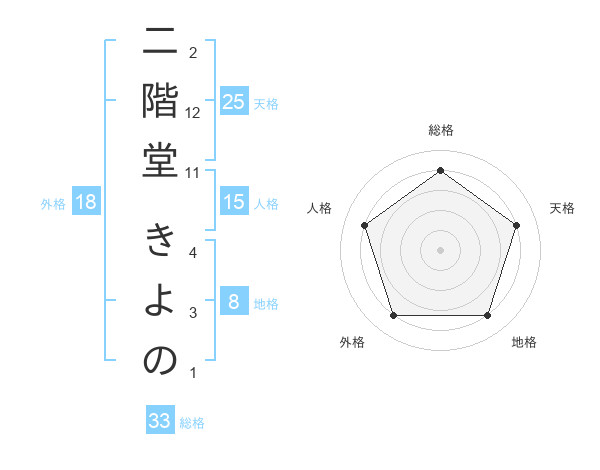 二階堂 きよのさんを姓名の画数から五運を鑑定