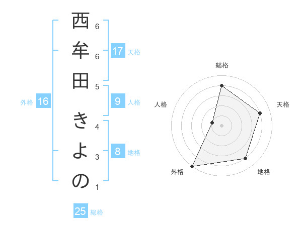 西牟田 きよのさんを姓名の画数から五運を鑑定