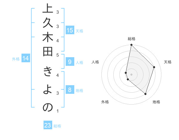 上久木田 きよのさんの総格は23画の5点!