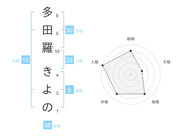 多田羅 きよのさんを姓名の画数から五運を鑑定