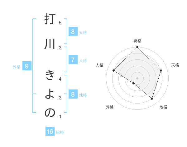 打川 きよのさんの総格は16画の5点!