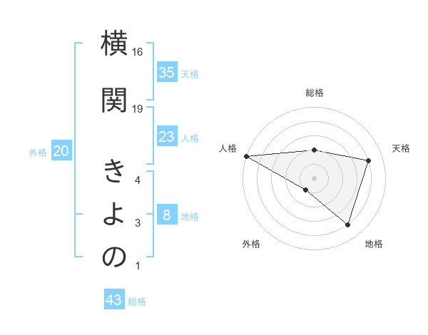 横関 きよのさんの総格は43画の2点!