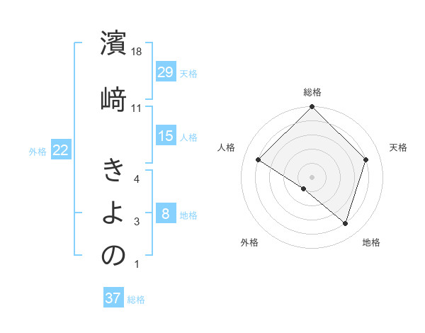 濱﨑 きよのさんを姓名の画数から五運を鑑定