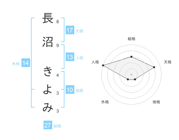 長沼 きよみさんを姓名の画数から五運を鑑定