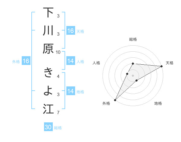 下川原 きよ江さんの総格は30画の2点!
