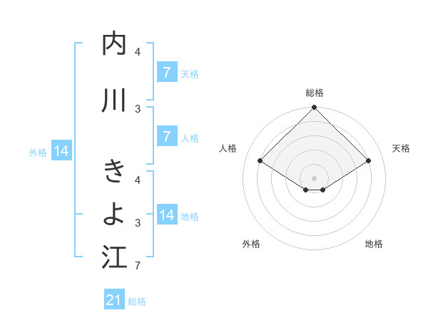 内川 きよ江さんを姓名の画数から五運を鑑定