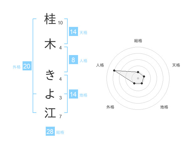 桂木 きよ江さんの総格は28画の1点!