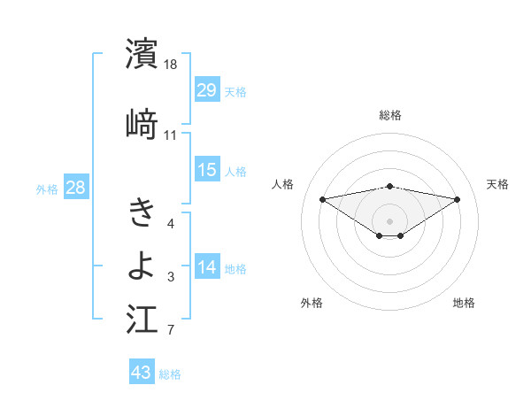 濱﨑 きよ江さんの総格は43画の2点!
